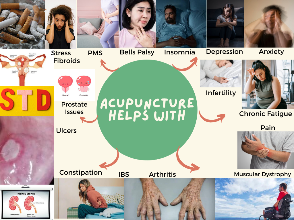 The process of acupuncture is a four-step process beginning with checking the pulse and other vitals. Then, insert the needles into acupuncture points or points where blood, lymph, and nerves can easily access connective tissue. Next, manipulate the needles, and sometimes moxibustion is applied. Moxibustion is a traditional Chinese medical technique that involves burning the herb mugwort to relieve cold or stagnant conditions by stimulating circulation. Finally, topical patches and herbal rub are applied to the post-need injection sites.