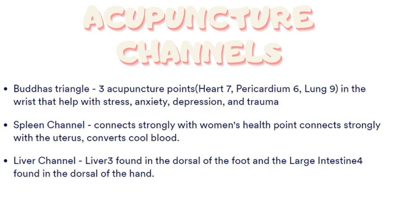 Acupuncture is a traditional Chinese medicine (TCM) technique that involves inserting thin needles into specific points on the body. There are 12 primary meridians in the body, acupuncturists stimulate the meridians with the points to activate the body's natural healing processes.